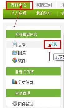 --内容中心---文章栏中点--发表---内容发布---提交 (完)