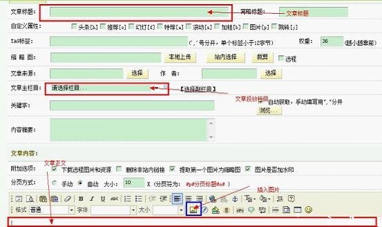 点此网站管理——注册——内容发布——贴文章——文章题目——请选择栏目——保存(完)