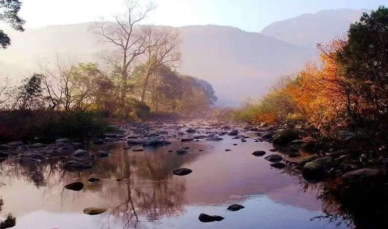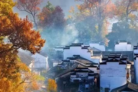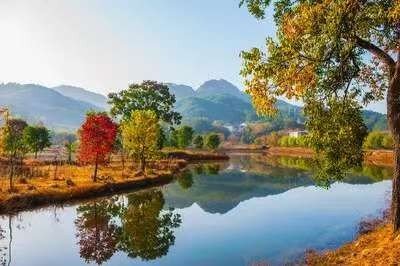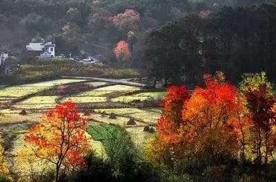秋雨秋风秋色浓。云飞雾敛日光红。