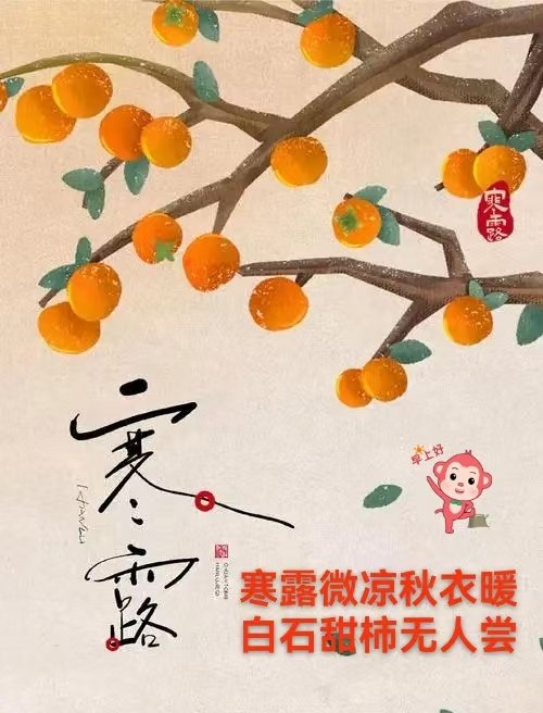 暮秋节气,寒露连霜降。昼夜温差起浮荡。蛰虫眠、木叶黄落飘零,寒流起,旅客添衣肥状。