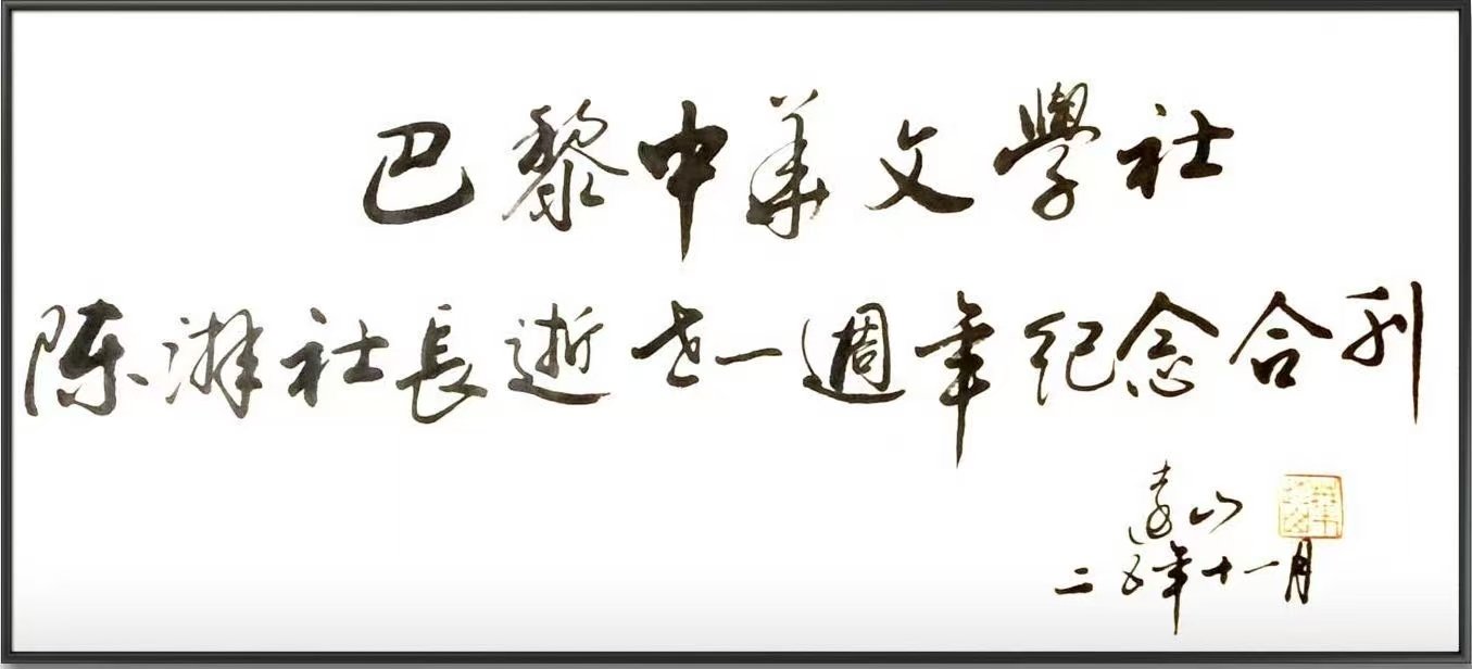望高卢、月冷吟园。笑貌留温,塞纳遗笺。荟聚才贤,弘扬国粹,刊载华篇。观笔底、诗魂未远。喜社中、薪火延绵。风骨箴言。几度萦回,遥祭云边。