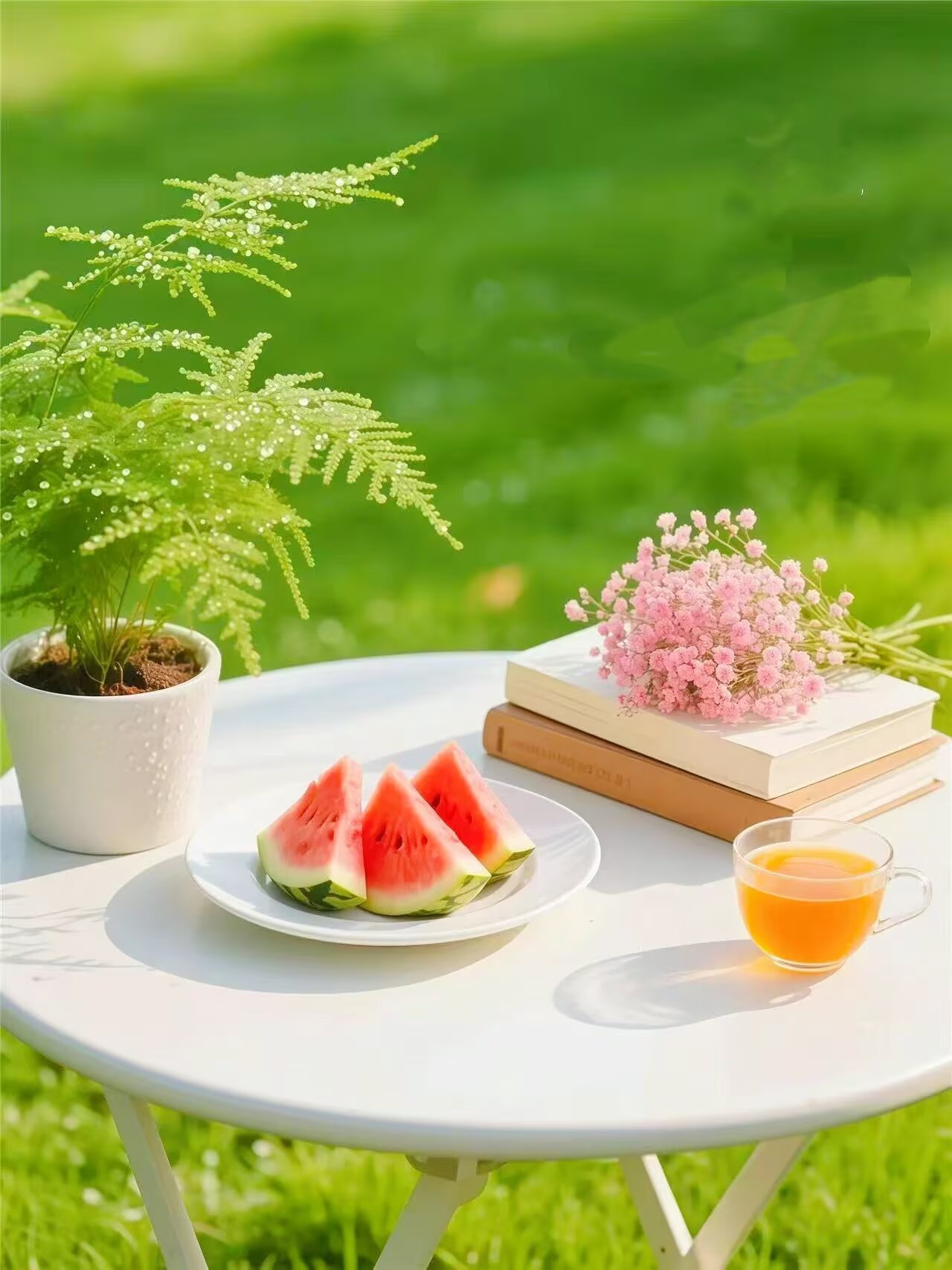 微风吹散晨曦雾,细雨丝丝日晒毡。